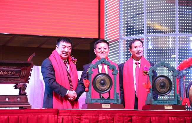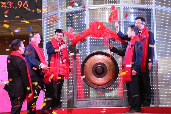 上圖為陳慶堂董事長和福清市人民政府張帆市長、上交所領導共同敲響開市銅鑼