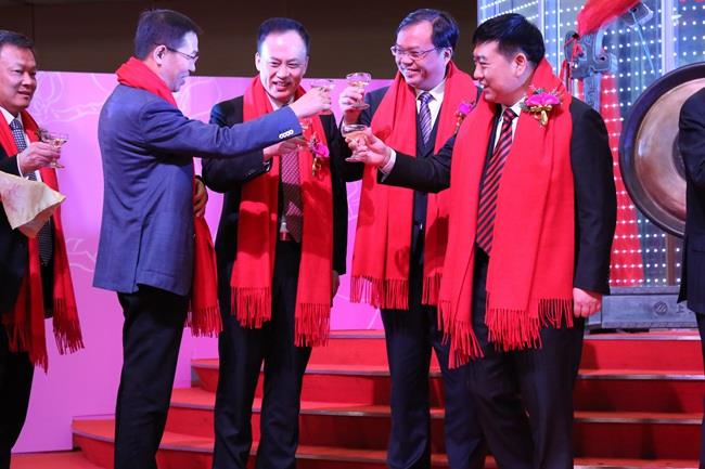 上圖為陳慶堂董事長與張帆等嘉賓及上交所領導舉杯共慶天馬科技成功上市