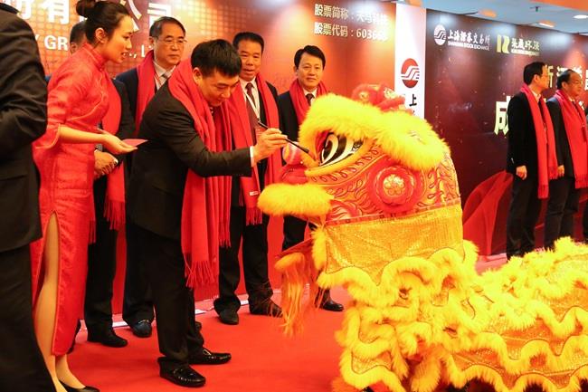 上圖為陳慶堂董事長在《成功上市紀念墻》上簽名留念