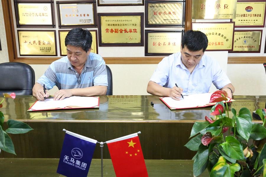 天馬科技陳慶堂董事長(zhǎng)(右)與福建師范大學(xué)福清分校陳盛校長(zhǎng)(左)簽訂校企戰(zhàn)略合作協(xié)議