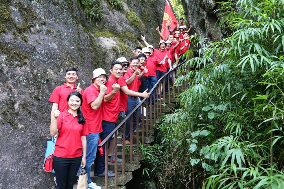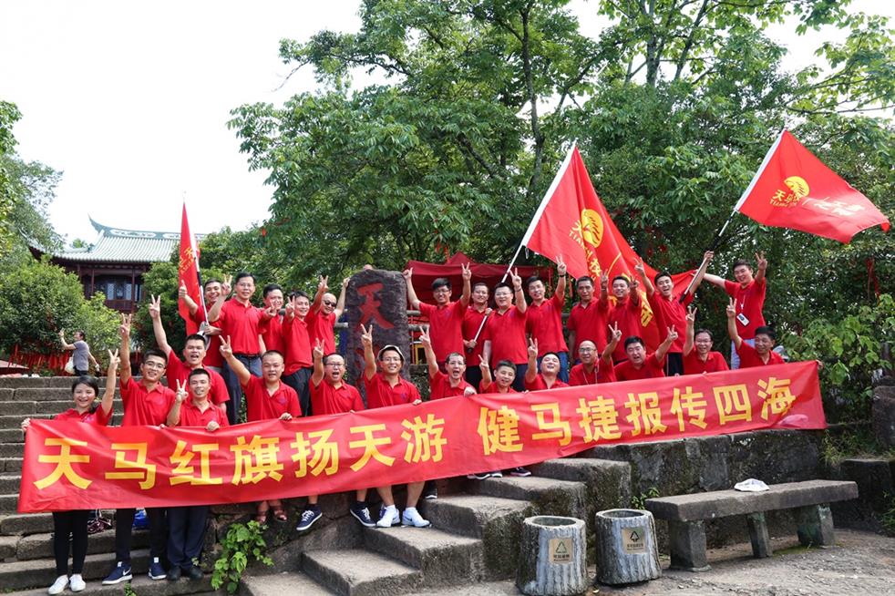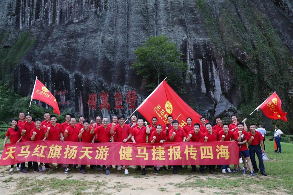 天馬科技訊 “天馬紅旗揚(yáng)天游,健馬捷報(bào)傳四海。”7月19日,世界自然與文化雙世遺產(chǎn)勝地武夷山天游峰頂傳來天馬人的陣陣爽朗的笑聲。為豐富、活躍集團(tuán)員工的業(yè)余文化生活,和著2017年半年度經(jīng)營分析會(huì)擂響的戰(zhàn)鼓,天馬科技在經(jīng)營分析會(huì)結(jié)束后,組織三十多名集團(tuán)精英代表挑戰(zhàn)自我,開展了勇攀武夷山第一勝地天游峰活動(dòng),并在其后進(jìn)行九曲漂流、觀看《印象大紅袍》山水實(shí)景演出,體驗(yàn)武夷山文化,積蓄沖刺年度經(jīng)營目標(biāo)的力量。