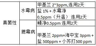 4、注意觀察及早發(fā)現(xiàn)及時(shí)對(duì)癥治療。鰻魚健康時(shí)活動(dòng)良好,發(fā)病時(shí)活動(dòng)異常、食欲下降,要及時(shí)檢查確診。檢查內(nèi)容包括皮膚粘液、內(nèi)臟器官(肝、膽、腸、胃、腎)、鰓組織(主要檢查寄生蟲、霉菌、細(xì)菌),另處還可通過肉眼觀察以及實(shí)踐經(jīng)驗(yàn)進(jìn)行判斷,有的放矢地選擇藥品對(duì)癥下藥。如鰻魚發(fā)生鰓霉病要用亞甲基蘭而不能用抗菌素。鰻魚常發(fā)生的病害及治療方法筆者總結(jié)如下表。